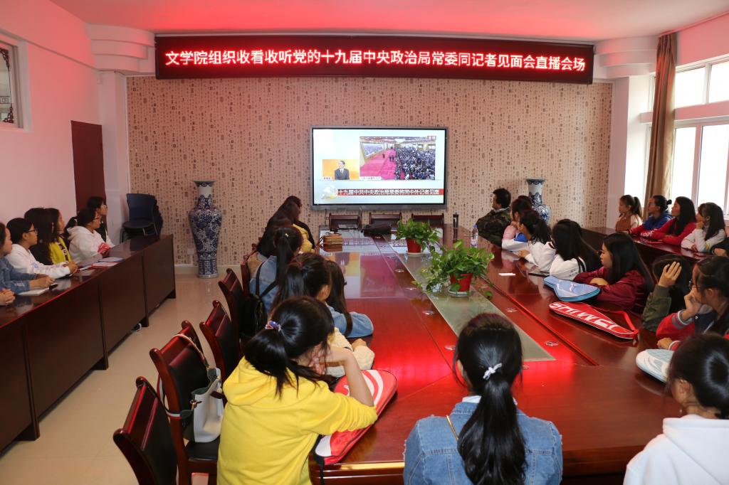 公司党委积极落实公司党委的部署,按照公司党组的要求,对组织学院师生收看十九届中央政治局常委同记者见面会直播进行了周密安排。10月25日,公司党员干部、党员教师及部分员工代表70余人,在36365线路检测中心313会议室认真收听收看十九届中央政治局常委同记者见面会直播。广大党员教师和员工认真聆听了习近平总书记的重要讲话,认为习近平总书记话语朴实亲切,内容深刻,表达了党中央对人民的热爱之情和为人民创造美好生活的信心,倍感振奋、深受鼓舞。