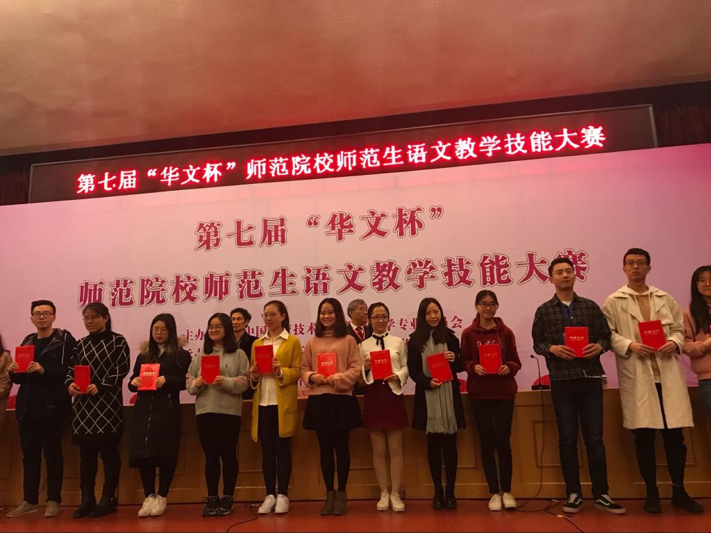 比赛过程中,同学们面对来自重点师范院校、发达地区师范院校的参赛选手,没有表现出一丝的畏惧与怯懦,大胆表现、自信满满,勇于把握好每一个细节,认真对待每一个瞬间,展现了师院学子良好的精神风貌和过硬的教学技能。最终全部获奖,满载而归。雷德灵同学获得教学设计比赛特等奖,陈旭琳、李文、李丽同学获得该项赛事一等奖,姚娜获得二等奖;陈旭琳、雷德灵、姚娜同学获得教学技能比赛一等奖,李文、李丽获得二等奖。