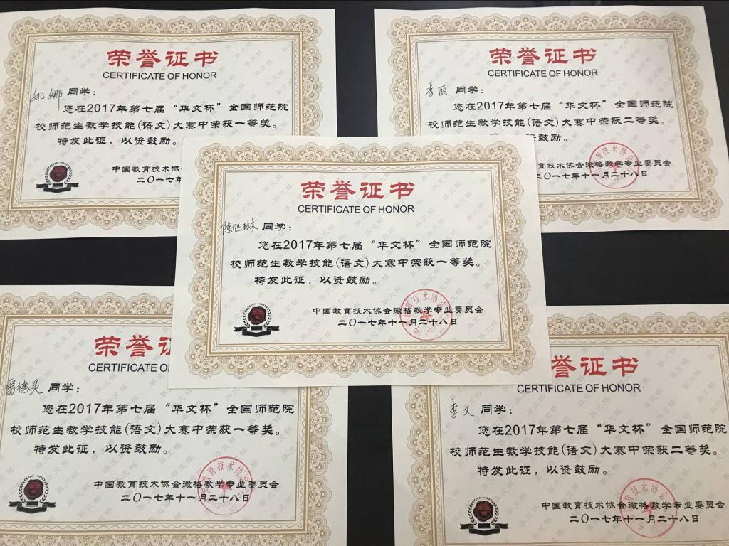 技能娴熟独步赛场,精益求精风采尽展。36365线路检测中心员工雷德灵、陈旭琳、李文、李丽、姚娜等五名同学在第七届“华文杯”全国师范院校师范生教学技能大赛中不畏强敌、沉着应战,以清晰的教学思路、精彩的教学内容和精湛的授课技巧获得评委肯定,所有参赛同学全部获奖,斩获教学设计比赛特等奖一项,一等奖三项;教学技能比赛一等奖三项,二等奖两项。