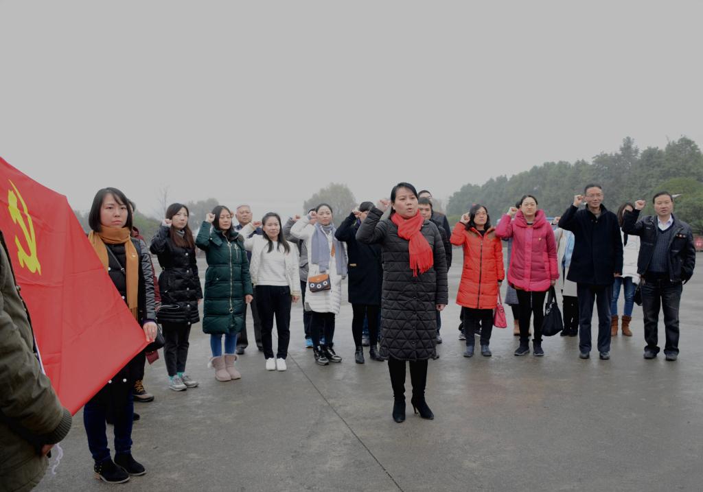 参观旧址活动后,在韦丹的领誓下,全体党员同志整齐列队,面向鲜艳的党旗,庄严地举起右拳,以洪亮的声音共同重温入党誓词。韦丹指出,通过重温入党誓词仪式,进一步强化了全体党员同志的“四个意识”,坚定了不忘初心、牢记使命,努力践行全心全意为人民服务的根本宗旨。