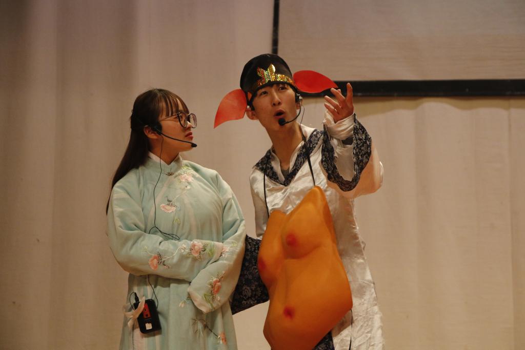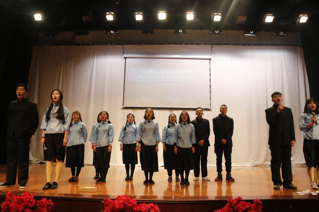 汇演中,同学们别出心裁,以新闻联播的形式展开串起整场汇演。16级广编一班秦苏、王枫、李栋担任“新闻联播”主持人。