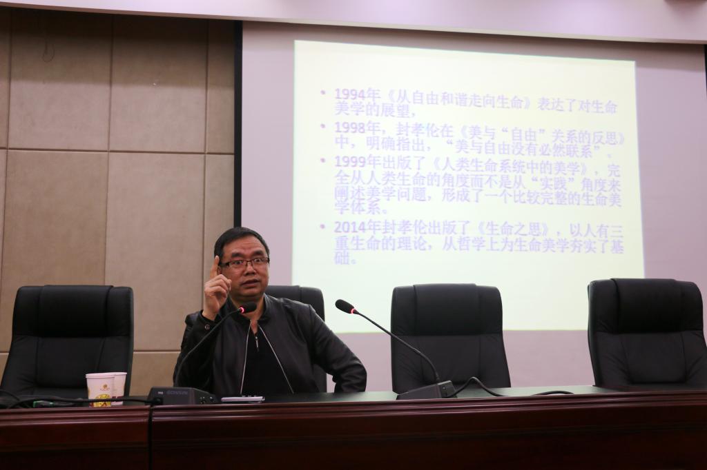 封孝伦教授详细讲解了实践美学的历史定位。他强调,“实践美学”有其历史合理性,即克服“客观美学”的片面性,立足于实践,确立人在审美活动中的主体性地位。随后,封教授从新的角度和起点思考美的本质,深入讨论审美和艺术问题。他从生命美学逃离、“后实践美学”逃离、生态美学逃离三个角度介绍了从实践美学逃离的三个波次。