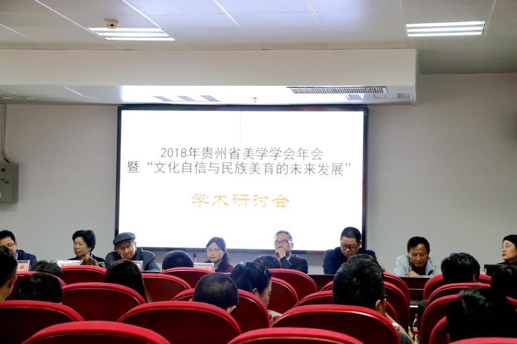 之后的主题发言大会上,贵州省美学学会会长教授封孝伦作“美育,育什么”重点发言。他从美育在美学体系中的逻辑定位及其教育使命两个方面做了详细的讲解。他认为:美育是培育和壮大人的精神生命,没有美育的教育是不完整的教育。没有受过美育的人,其精神生命必定是贫弱的。随后,贵州省美学学会秘书长龚妮丽教授、贵州省旅游发展委员会副主任汪文学教授、贵阳学院教授陆永胜博士立足于城市发展、联系当前工作、围绕学术关怀现实的问题,围绕“文化自信与民族美育的未来发展”这一主题,分别就审美艺术与城市发展、文化自信与民族美育的未来发展、阳明心学美学进行了研讨交流。