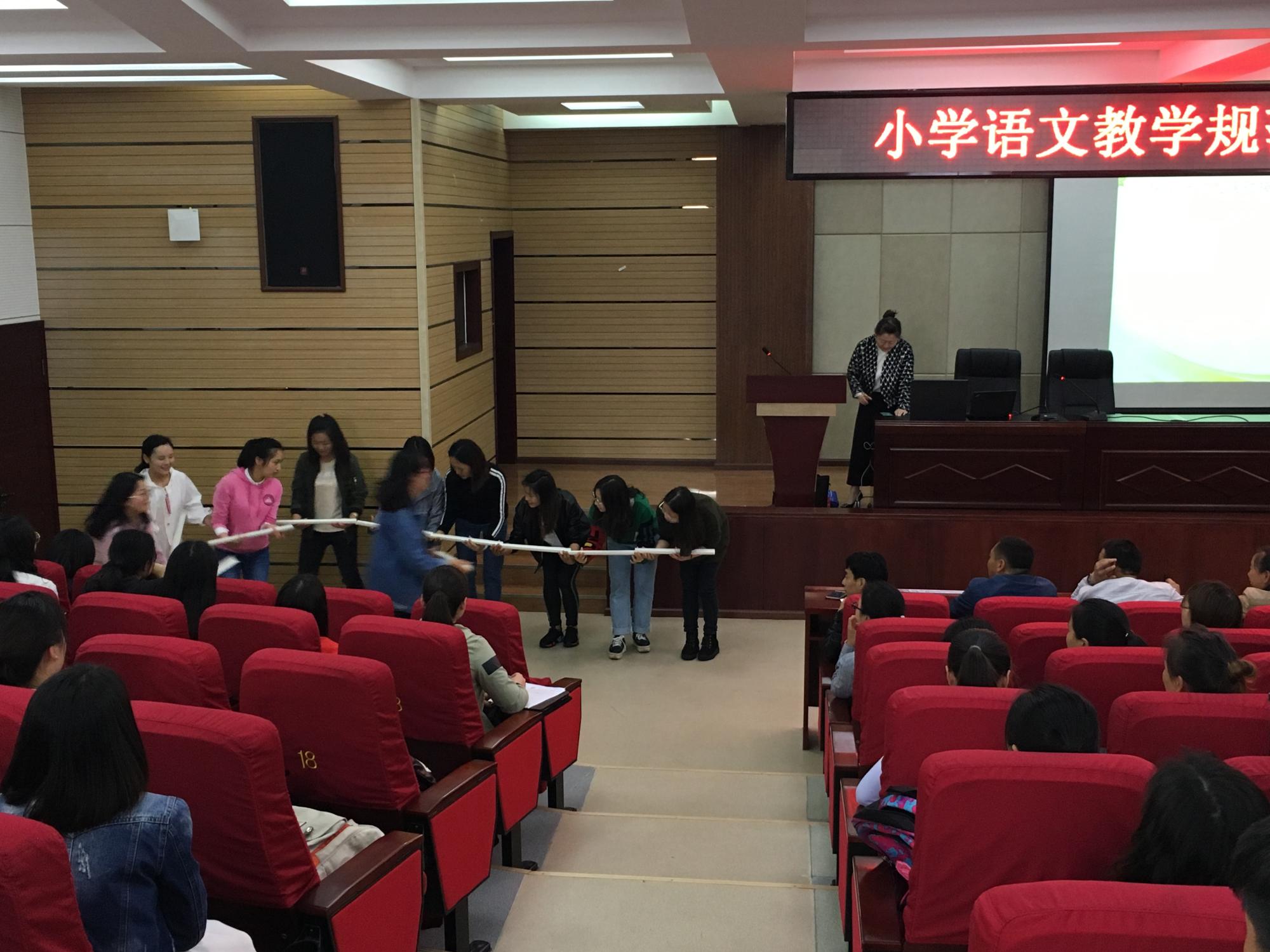 讲座开始,申璐老师带领员工从游戏开始,讨论小学语文教学的课堂节奏、课堂气氛、教学主体等问题。讲座中,申璐老师以自己的《临死前的严监生》《景德镇的瓷器》等获奖教学案例为基础,和同学们一起分析了小学语文教学的目标设置、教学语言、提问技巧、文本解读等多个方面的问题,同时也向员工传授了一名小学语文教师应有的基本素质、基本教学规范等基础性知识和能力。申璐老师强调,作为一名小学语文教师,要原原本本学习课程标准,老老实实阅读课文文本,只有把握了这两个语文教学的“重器”,才能教好语文。