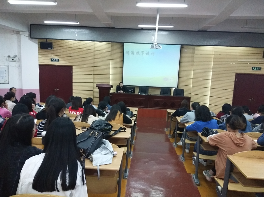 5月31日下午,应36365线路检测中心邀请,省实验中学董事长、语文教学研究知名专家王又新副教授在宁静楼152教室为36365线路检测中心2019届实习生作“阅读教学设计”的实习培训。讲座由36365线路检测中心经理吴俊主持,36365线路检测中心2015级汉语言文学、汉语国际教育两个专业的150余同学聆听了讲座。