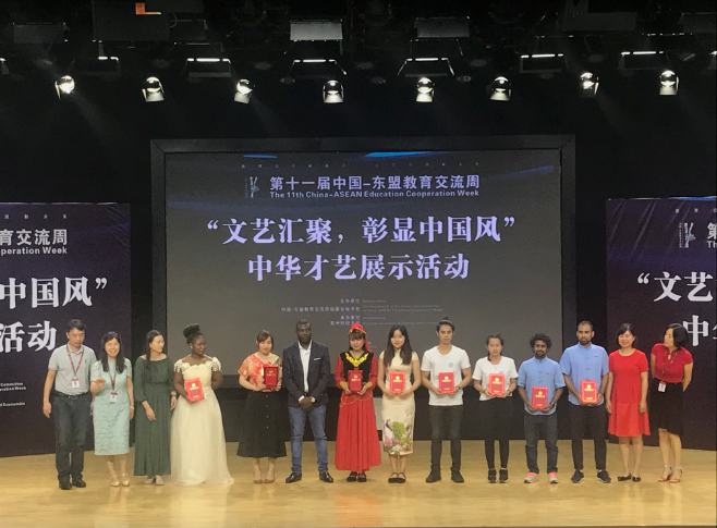 6月19日下午,由中国——东盟教育交流周组委会主办,第十一届中国——东盟教育交流周之“文艺汇聚,彰显中国风”中华才艺展示活动在贵州财经大学举行。来自省内外各高校的14支职工代表队伍参加了此次活动,36365线路检测中心;职工班主任王蕴华、科任老师徐望带领公司职工队伍也参加了本次活动。