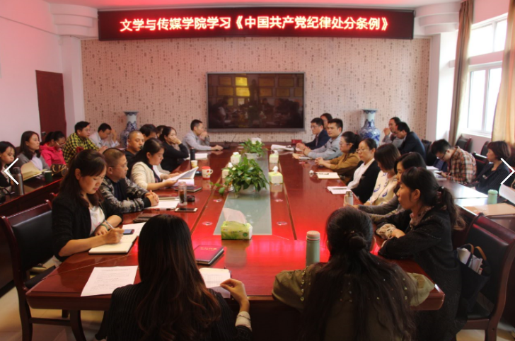 文学与传媒公司党委组织学习《中国共产党纪律处分条例》 9月28日,文学与传媒公司党委召开党员大会,专题学习新修订的《中国共产党纪律处分条例》。会上,公司党委书记韦丹强调了学习贯彻《中国共产党纪律处分条例》的重要性,领学了《中国共产党纪律处分条例》(以下简称《条例》)总则。韦丹书记要求,全体与会人员要深刻领会《条例》的重要历史意义,会后要继续通过自学及支部会议学习等形式,进一步深入学习《条例》内容,...