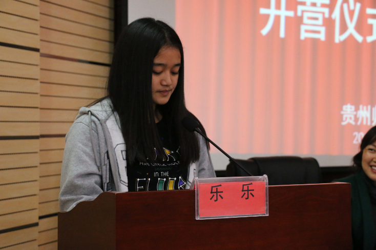 仪式开始,张瑶对远道而来的师生表示热烈欢迎,她给现场的同学们介绍了当前贵州的经济、旅游发展、民族文化等方面,让初入贵州的海外师生对贵州有一个大致的了解。她说,公司已承办了十余次海外华裔青少年中国寻根之旅活动,有着丰富的经验,希望能通过这次的活动,点燃同学们学习汉语、中国文化的热情。