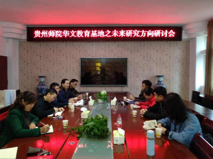 会上,汉语国际教育专业教研室主任、此前实际负责华文教育基地相关事务的杨荫冲老师对汉语国际教育专业和华文教育基地的有关情况进行了简要介绍。紧接着,中山大学李炜教授结合公司乃至贵州的特色,建议公司华文教育基地要尽可能做到“人无有我,人有我特”。他认为,除了做好传统的针对海外华人子弟所进行的汉语和中华文化教育活动之外,公司华文教育基地在业务内容上应有所扩展,以适应国家“一带一路”发展需要。比如,教育的对象可以扩展至住在国中资机构聘用人员,可考虑针对他们的职业应用需求提供相应的职业汉语培训。他指出,根据调查可见,当前“一带一路”沿线国家中资机构急需本土化,需要聘用大量住在国国民作为员工,以实现快速融入当地生活的目标。而所聘用的住在国国籍员工,在职业进行期间需要用到相应的汉语表达。我们可以针对他们的这种实际需求提供对应的职业汉语培训,让他们在较短的时间内掌握适应职业需要的汉语表达。例如路桥工程、水利工程、电器维修等各工种或职业方面的专业汉语,可以让外籍员工在较短的时间内学会,这一方面满足企业在住在国本土化的需要,另一方面也迎合外籍员工个人职业生涯发展的需要。可以说,这样的项目,是具有巨大市场价值的项目。而要做好这样的项目,前提就是踏实地做好相关的前期调查研究,做好相应的职业汉语语汇库,按照已有的国际职业汉语培中标准体系,完善相关教学内容和教学流程的开发。李炜教授强调,贵州具有独特的地理和人文优势,省内有不少先进的技术企业实体,如大数据企业、天眼之类,也有许多重要的基础建设方面的企业,为我们做好相关语汇调查研究奠定了必要的基础。李炜教授指出,目前其所带领的团队已于2017年提交了国际职业汉语培训标准体系方案,并且已经获得了教育部审批。目前正着力于具体的职业汉语内容的开发和相关方案的研发。他希望公司华文教育基地新任常务秘书张超老师能够带领团队积极参与他们这个项目,在学校华文教育基地领导小组的领导下,主动开展有关研究工作,争取为公司华文教育基地做一些实实在在的成果,为公司华文教育基地的未来开辟新的天地。同时,李炜教授表示,他的团队将尽最大努力为公司华文教育基地的工作提供最大的支持。李炜教授团队成员刘亚男博士、于晓雷博士、杨靖雯博士等也分别从不同的角度分享了国际职业汉语培训的一些经验和看法。