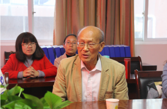 韦丹首先对四位退休教师进行了介绍并对他们的到来表示了热烈的欢迎,并介绍了此次活动的背景、目的与意义。为了突出教学中心地位,学校举办了首届教学节。同时,今年是学校的师德师风建设年。学院的老教师们在师德师风方面有口皆碑,树立了良好的榜样。此次活动是学校首届教学节学院教师层面的特色活动,也是学院师德师风建设的重要安排,还是学院推进专业发展的重要举措。