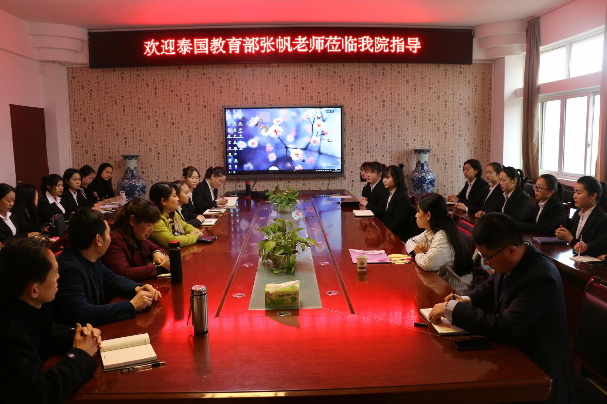 最后,张帆老师发言。张帆老师对学院热情、周到、细致的接待表示感谢。她指出,赴泰实习项目是学校与泰国教育部之间的合作,来之不易。项目开展5年来,学校一届又一届的学长和学姐用他们认真负责的工作态度,扎实过硬的专业能力,为项目的开展打下了坚实基础。希望同学们秉承传统,努力工作,推进项目的进一步发展。同时希望同学们能以一个良好的状态去面临即将到来的的挑战。