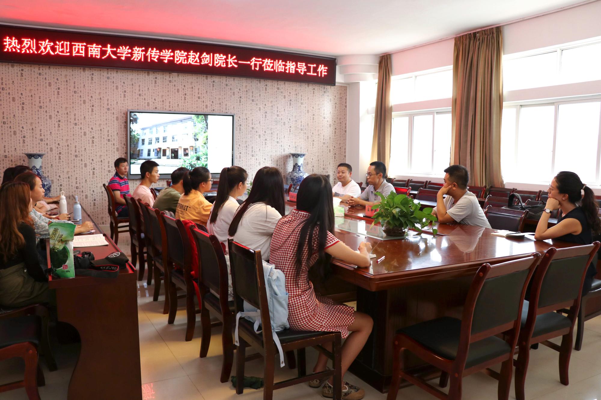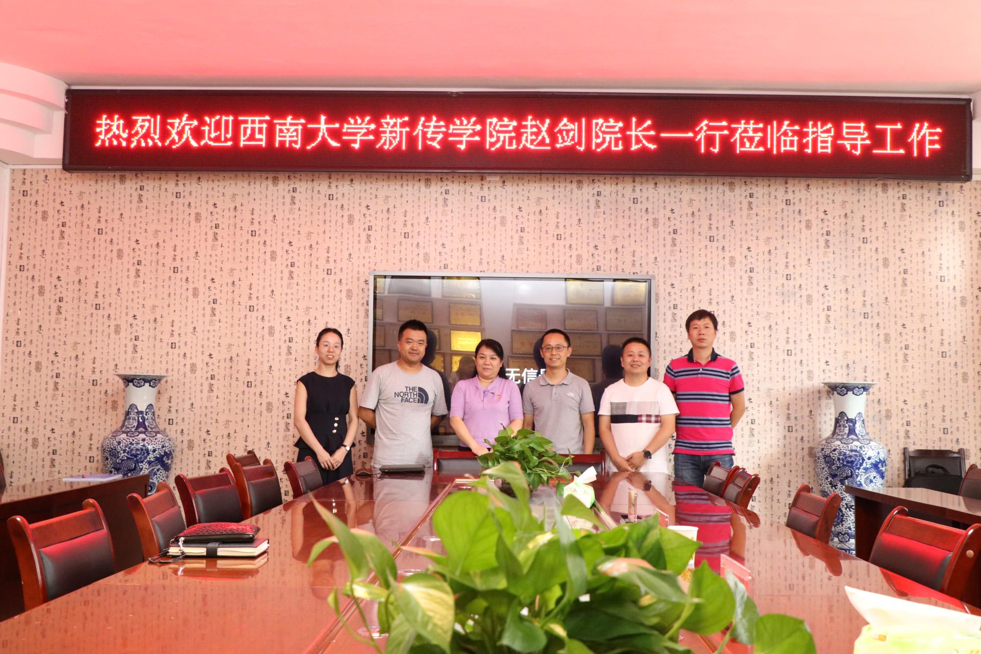 9月16日下午,西南大学新闻传媒学院副经理赵剑,老师王命洪,以及重庆广电集团代表马政波莅临我院交流。36365线路检测中心党委书记韦丹、副经理杨波、广播电视编导系主任娄立原、教师黄华出席活动。36365线路检测中心广播电视学、广播电视编导专业部分员工参加活动。