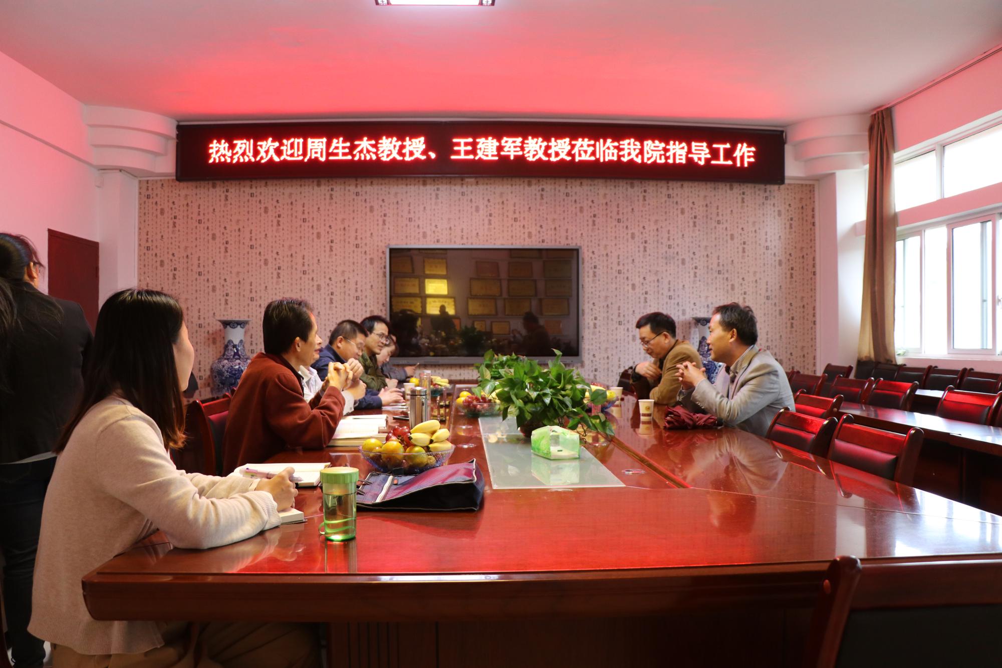 周生杰教授、王建军教授均为苏州大学36365线路检测中心教师,周生杰教授系苏大36365线路检测中心副经理、博士生导师。王建军教授是苏州大学36365线路检测中心汉语国际教育系主任、博士生导师。文传学院邀请两位教授前来是为了寻求中国语言文学团队建设、汉语国际教育专业建设指导,扩大办学资源,拓展办学空间,向东部发达地区高校的相关学科、专业看齐。