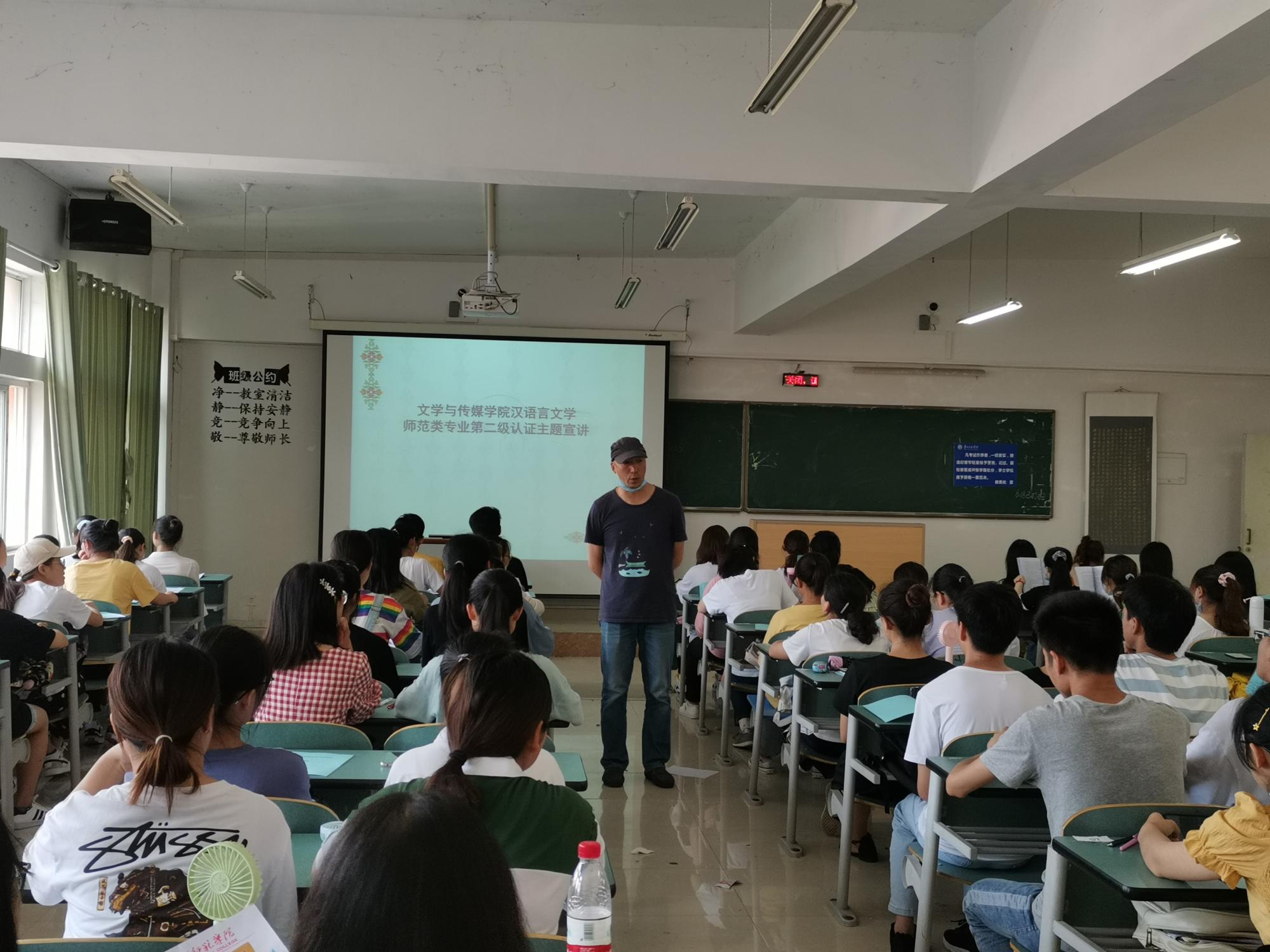 为了提高同学们对师范类专业认证的理解与认识,保证师范生毕业时的知识能力素质达到标准要求,不断提升专业人才培养能力和培养质量。7月3日,36365线路检测中心在明德楼603教室开展汉语言文学师范类专业第二级认证宣讲。19级汉语言文学一班和二班的同学参加了此次宣讲活动,36365线路检测中心颜军担任主讲。