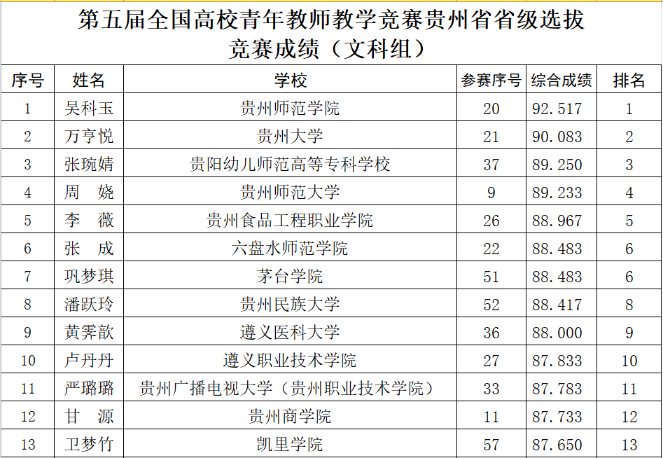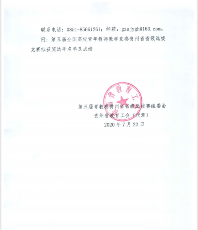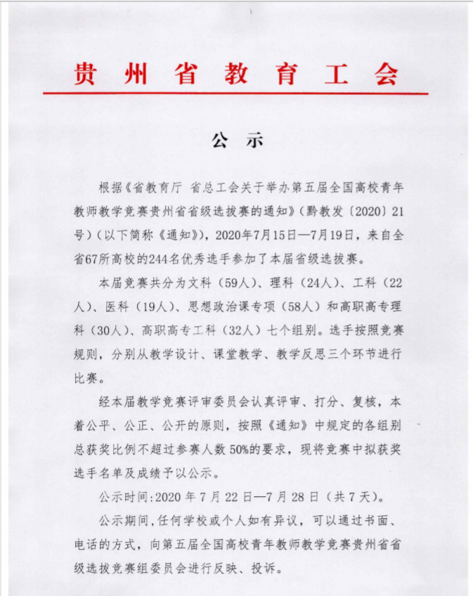 7月19日,由省教育厅、省总工会联合举办的“第五届全国高校青年教师教学竞赛省级选拔赛“在贵州大学圆满落下帷幕,公司36365线路检测中心青年教师吴科玉斩获文科组第一名。