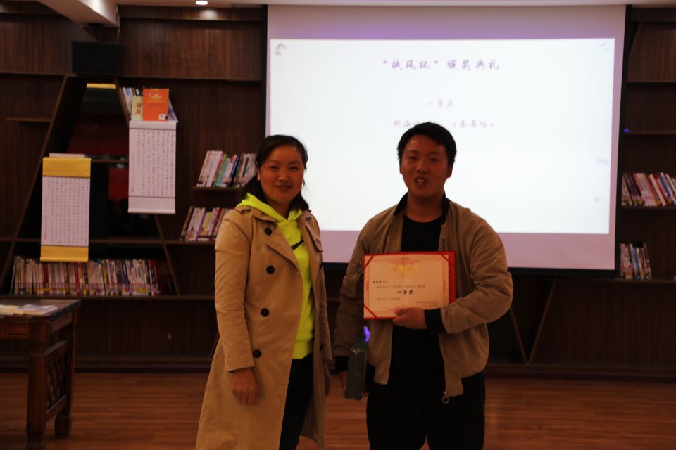活动伊始,主持人朱忠梅介绍扶风诗社的办社历程,并宣布扶风诗社“扶风杯”颁奖典礼暨第九期《扶风印象》发刊会活动开始。随后本社第十七届社长彭廷海致辞并对到来的老师和同学们表示热烈的欢迎和感谢。活动中各位朗读者带来获奖佳作古体诗及现代诗共十一首的精彩朗诵:古体诗《无题》让我们深刻感受到了阳春三月征人北望的忧伤;现代诗《致敬逆行者》让我们领悟到了泱泱华夏的大爱无疆;而荣获一等奖的佳作《青草贴》则展现了诗歌无与伦比的魅力,让在场的同学深深的沉醉其中,难以自拔。朗诵比赛后,颁奖嘉宾为获奖作者一一颁发荣誉证书及奖品并进行合影留念。