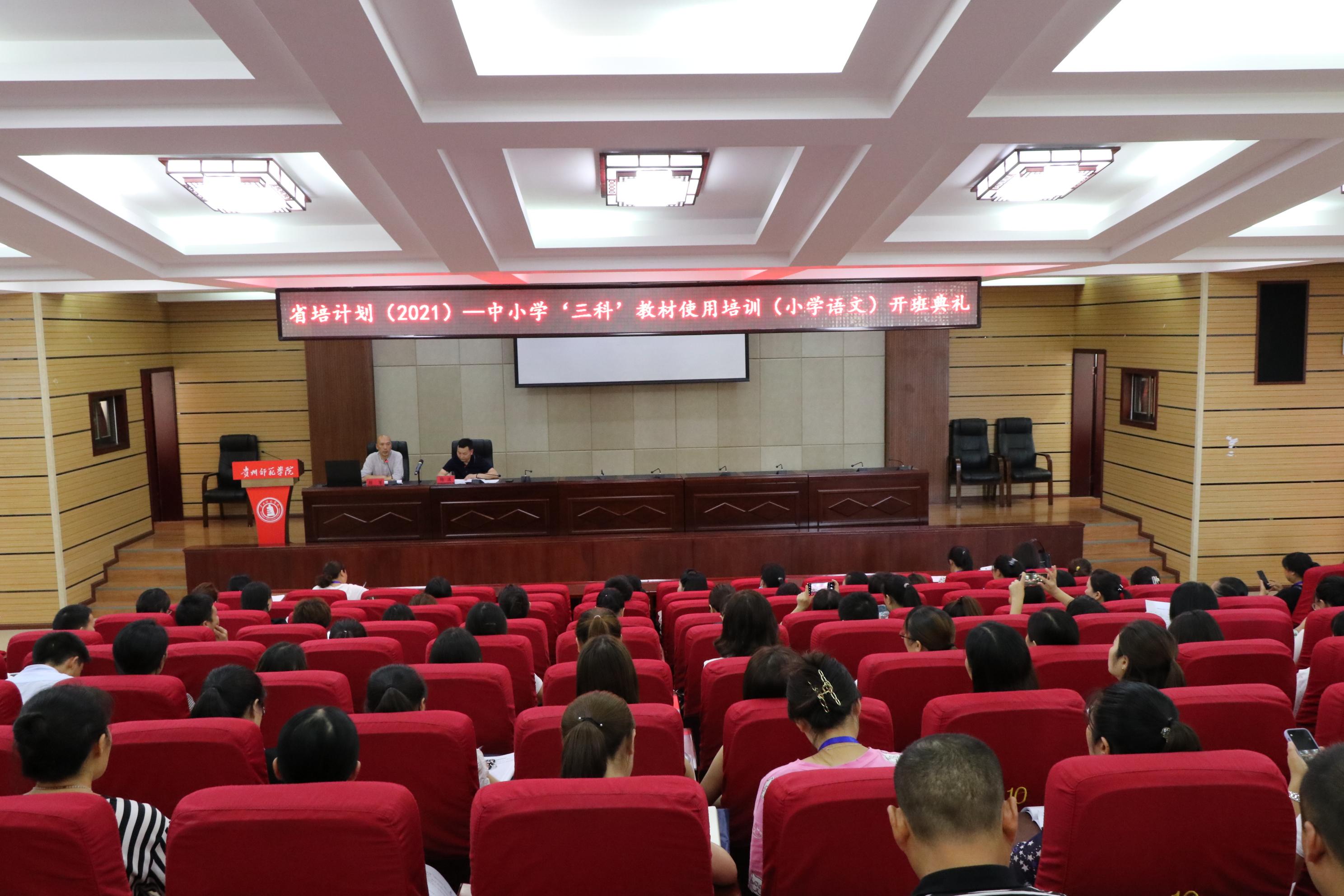 本网讯 7月25日,省培计划 (2021)-中小学“三科”教材使用培训项目小学语文班在公司文韬院二楼报告厅举行开班典礼。开班典礼共有200名小学语文骨干教师参加,36365线路检测中心经理杨波、各班班主任老师以及助理同学出席了本次开班典礼。典礼由颜军老师主持。