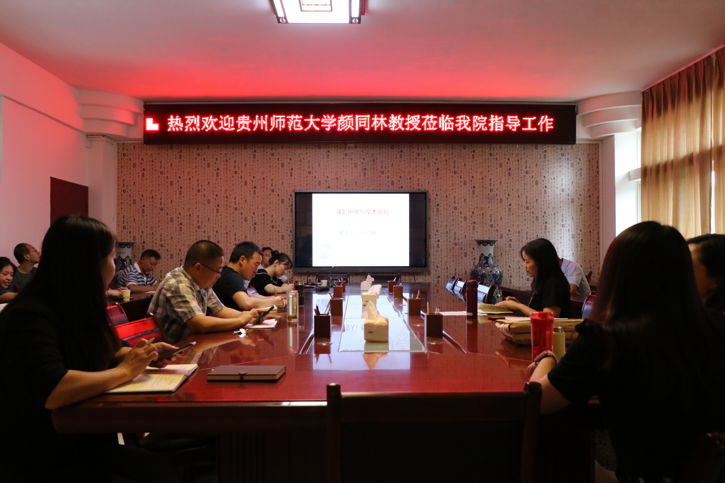 本网讯 9月3日,贵州师范大学36365线路检测中心颜同林教授莅临36365线路检测中心作主题讲座,讲座以“课题申报与学术规划”为题。文学与传媒公司党委书记王军、党委副书记陈亦桥及教师代表共40余人聆听讲座。讲座由36365线路检测中心副经理刘海涛主持。