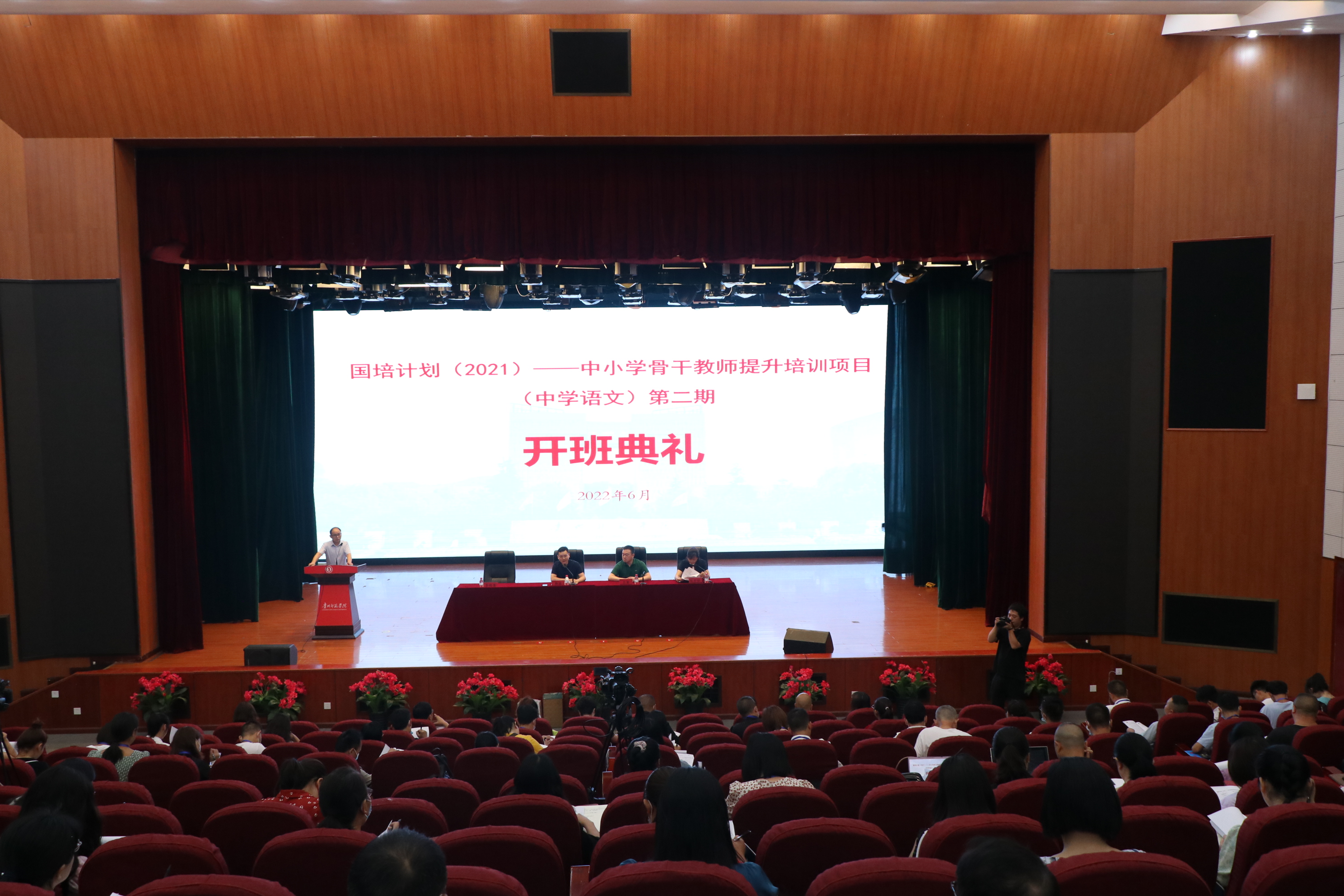 本网讯 2022年6月29日,“国培计划(2021)”-中小学学科骨干教师提升培训项目(初中语文)集中培训第二期顺利展开。6月30日上午,本期培训开班典礼在公司逸夫楼演播厅举行。文学与传媒公司党委书记王军、经理杨波、党委副书记陈亦桥、各班班主任老师、员工助理及全体参训学员参加了本次开班典礼,典礼由李明勇老师主持。