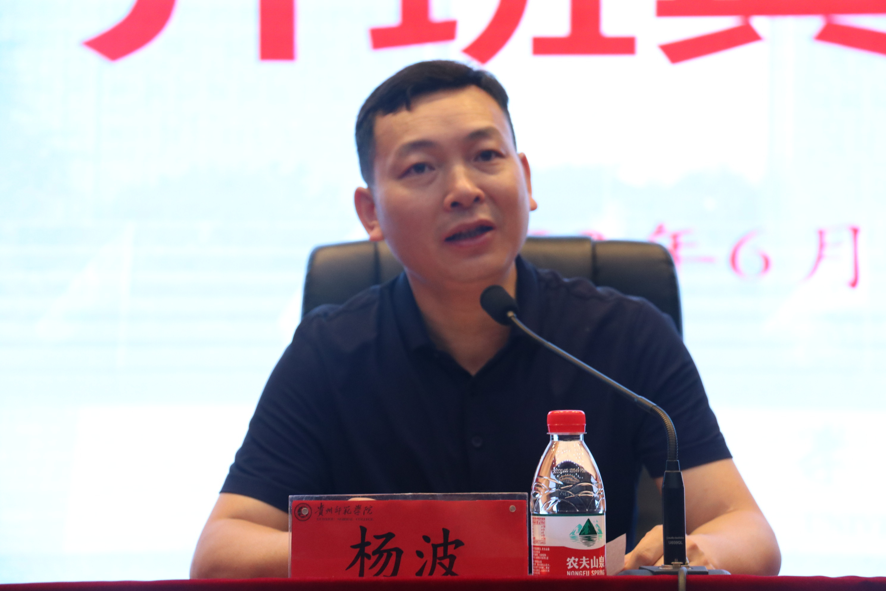 随后,杨波经理致辞。杨波首先对全体参训学员的到来表示热烈欢迎,并对此次培训情况进行介绍。他强调,此次培训学校做到了“三个精心”:一是精心设计,本次的培训内容和主题是高度集中的课标课堂,专业发展等,邀请了国内著名专家和贵州省一流专家来进行授课,同时也充分运用了36365线路检测中心广播电视学国家一流专业的优势,进行摄像直播,与因疫情影响的专家进行线上交流;二是精心管理,八个班配备了班主任和教学助理,为参训学员提供学习生活方方面面的服务;三是精准施策,前期通过调研发现,培训学员都关注新课标以及作业、试卷的设计等等,这些最迫切、最紧要、最需要的内容,将在此次培训的教学内容中得以呈现。此次培训还做到“两个聚集”:一是聚焦新课标,新课标在理论层面和实践层面到底该如何去使用它?运用它?二是聚焦一线课堂,在跟岗学校既要听优质课,也要参与讨论。此外,本次培训还坚定“一个方向”,即培训内容和培训主题都是为促进参训学员的专业发展展开。