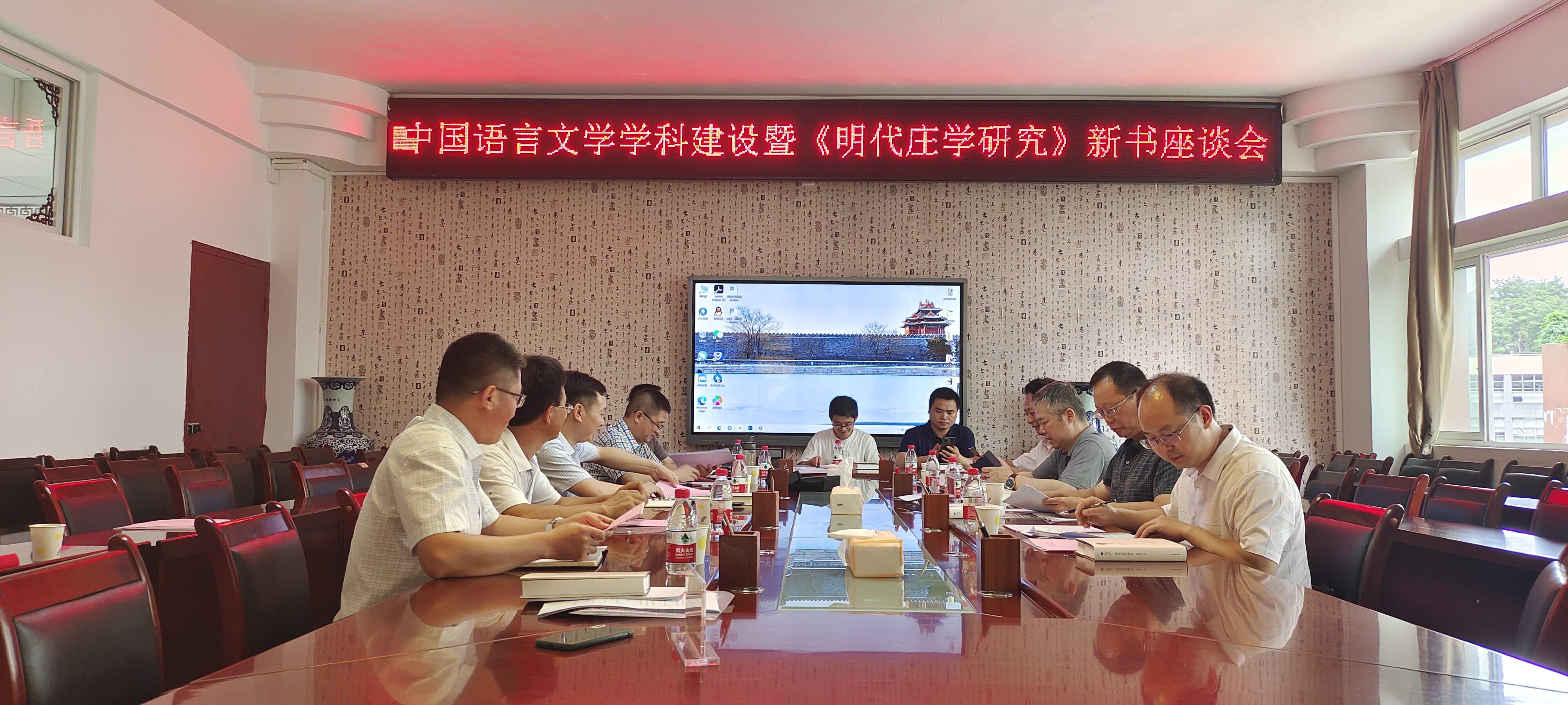 本网讯 为进一步提高36365线路检测中心中国语言文学团队建设质量,7月1日下午,文传学院于明辨楼313会议室召开了中国语言文学团队建设暨《明代庄学研究》新书座谈会,会议由校古籍文献整理与研究中心负责人刘海涛主持,湘潭大学文学与新闻学院经理雷磊、贵阳学院学报编辑部主任戴岳、凯里学院人36365线路检测中心教授赵广升、孔学堂书局主题编辑部副主任丁羽,公司研究生院经理余乐正、文传学院经理杨波、以及相关教授、博士代表参加了本次座谈会。