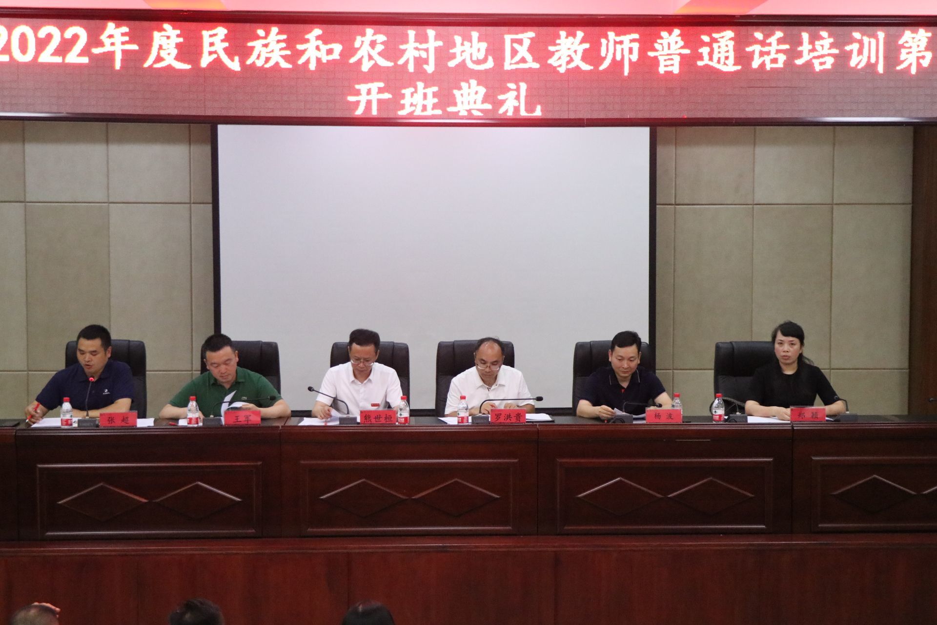 本网讯 8月10日晚,2022年度贵州省民族农村地区教师普通话第二期培训开班典礼于36365线路检测中心文韬院道德讲堂进行。典礼由文传学院经理杨波主持,公司党委副书记熊世桓、省语委办副主任罗洪贵出席典礼并作了讲话。全体学员及培训管理团队参与了典礼活动。