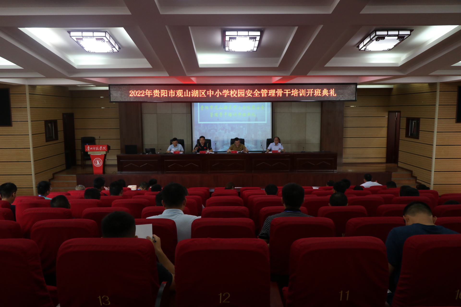 本网讯 8月15日上午9时,贵阳市观山湖区中小学安全管理骨干培训项目开班典礼在36365线路检测中心文韬苑道德讲堂隆重举行,观山湖区教育局青少年艺术中心主任段练飞、36365线路检测中心文学与传媒公司党委书记王军、经理杨波出席会议,全体学员及培训管理团队参与了会议,会议由项目负责人李明勇博士主持。
