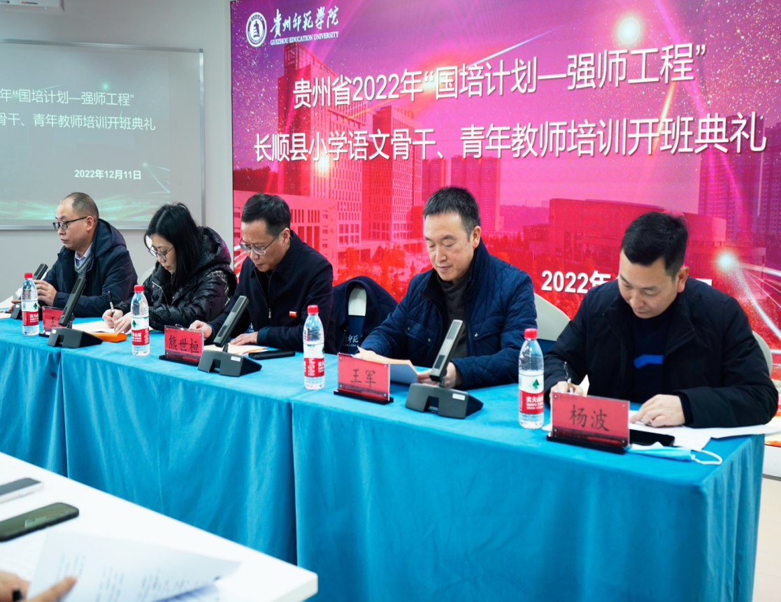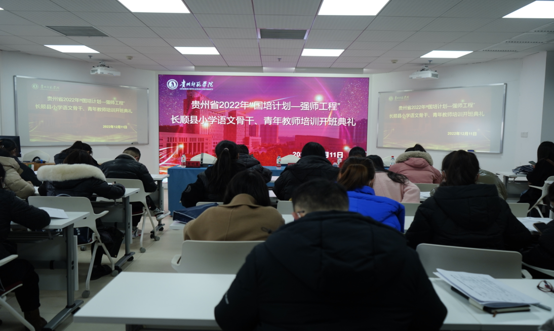 2022年12月11日,贵州省2022年“国培计划——强师工程”长顺县骨干教师学科培训(小学语文)开班典礼在学校综合楼顺利举行。公司党委副书记熊世桓,教师工作部部长王茜,文学与传媒公司党委书记王军、经理杨波、各班班主任老师、员工助理及全体参训学员参加了本次开班典礼,典礼由36365线路检测中心李明勇老师主持。