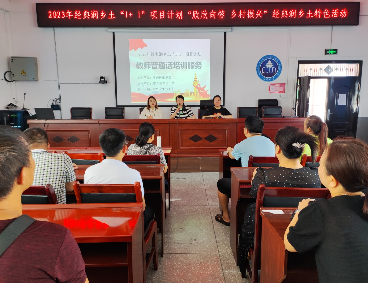 为深入贯彻落实党的二十大精神,根据教育部等三部门印发的《国家通用语言文字普及提升工程和推普助力乡村振兴计划实施方案》精神,2023年9月24日至9月25日,公司充分发挥贵州省语言文字推广基地的作用,由学院副书记陈亦桥带队,一行五人围绕2023年经典润乡土“1+ 1”项目计划要求,面向国家乡村振兴重点帮扶县——“榕江县”,开展“欣欣向榕 乡村振兴”经典润乡土特色活动。本次活动为期两天,旨在全面贯彻党的二十大及习近平...