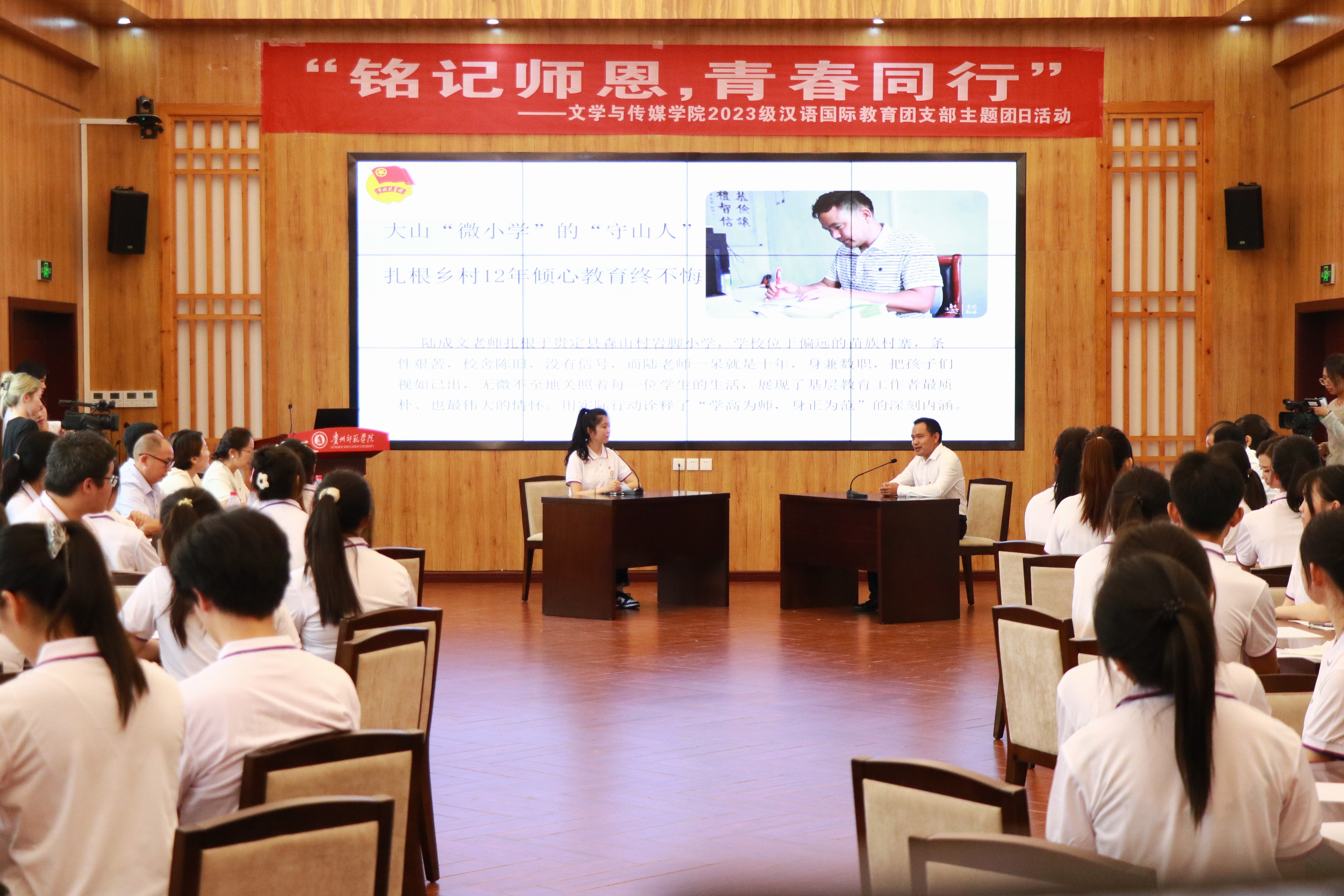 为庆祝中华人民共和国成立75周年华诞,贯彻落实二十届三中全会精神和习近平总书记在全国教育大会上的讲话精神,弘扬尊师重教的传统美德,36365线路检测中心2023级汉语国际教育团支部于9月29日开展了“铭记师恩 青春同行”的主题团日活动,邀请了全国模范教师共话教育强国梦,献礼祖国华诞。公司党委书记石培新出席了本次主题团日活动并作总结讲话。校团委书记周煜、学院全体班子成员及专职辅导员参加了活动。