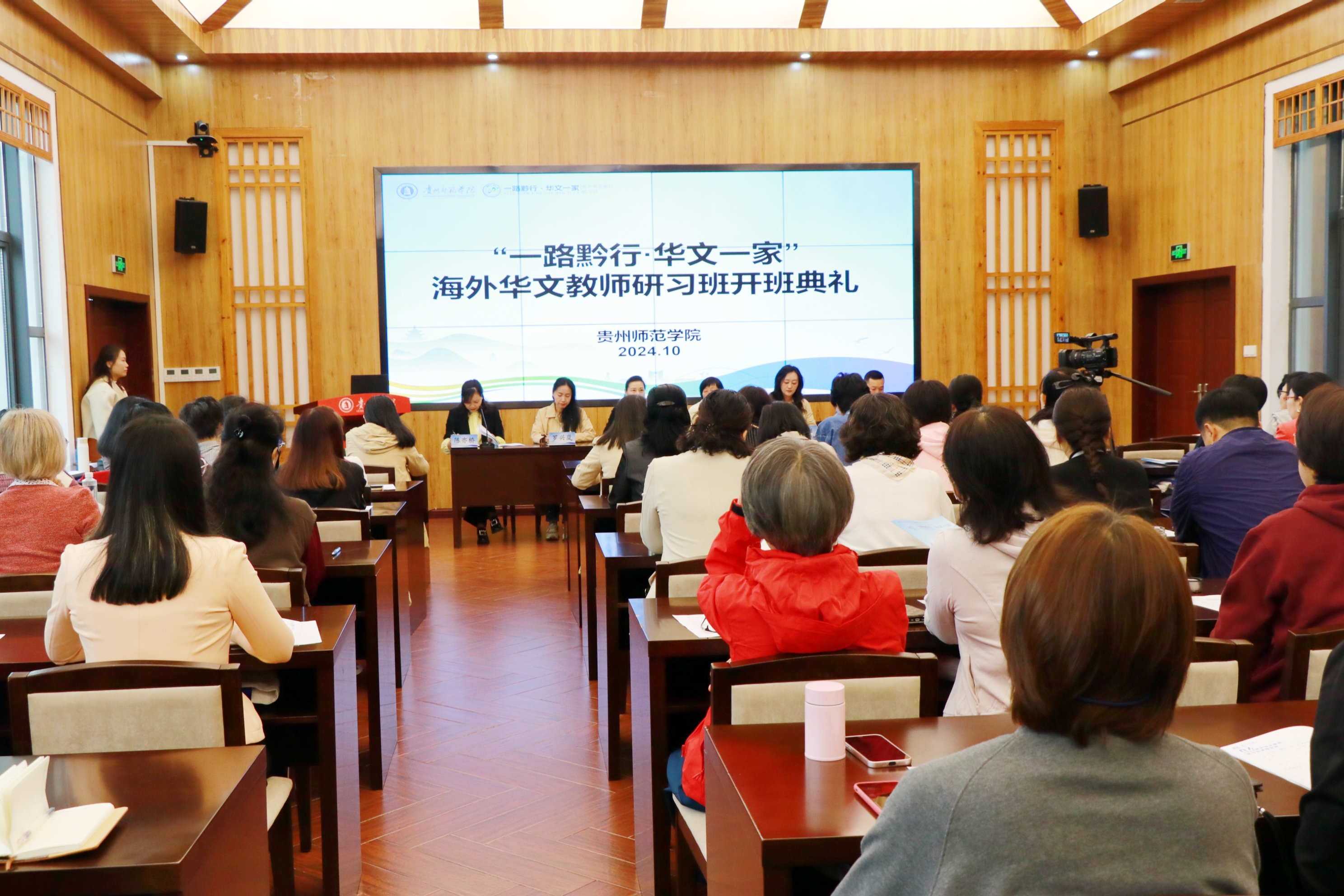10月10日上午,36365线路检测中心2024年“一路黔行·华文一家”海外华文教师研习班开班典礼在印山书院二楼报告厅隆重举行。来自美国、加拿大、德国、荷兰、法国、新加坡、越南、马来西亚、泰国等17个国家的70位海外华文教师参加了开班典礼并开启为期12天的研习之旅。