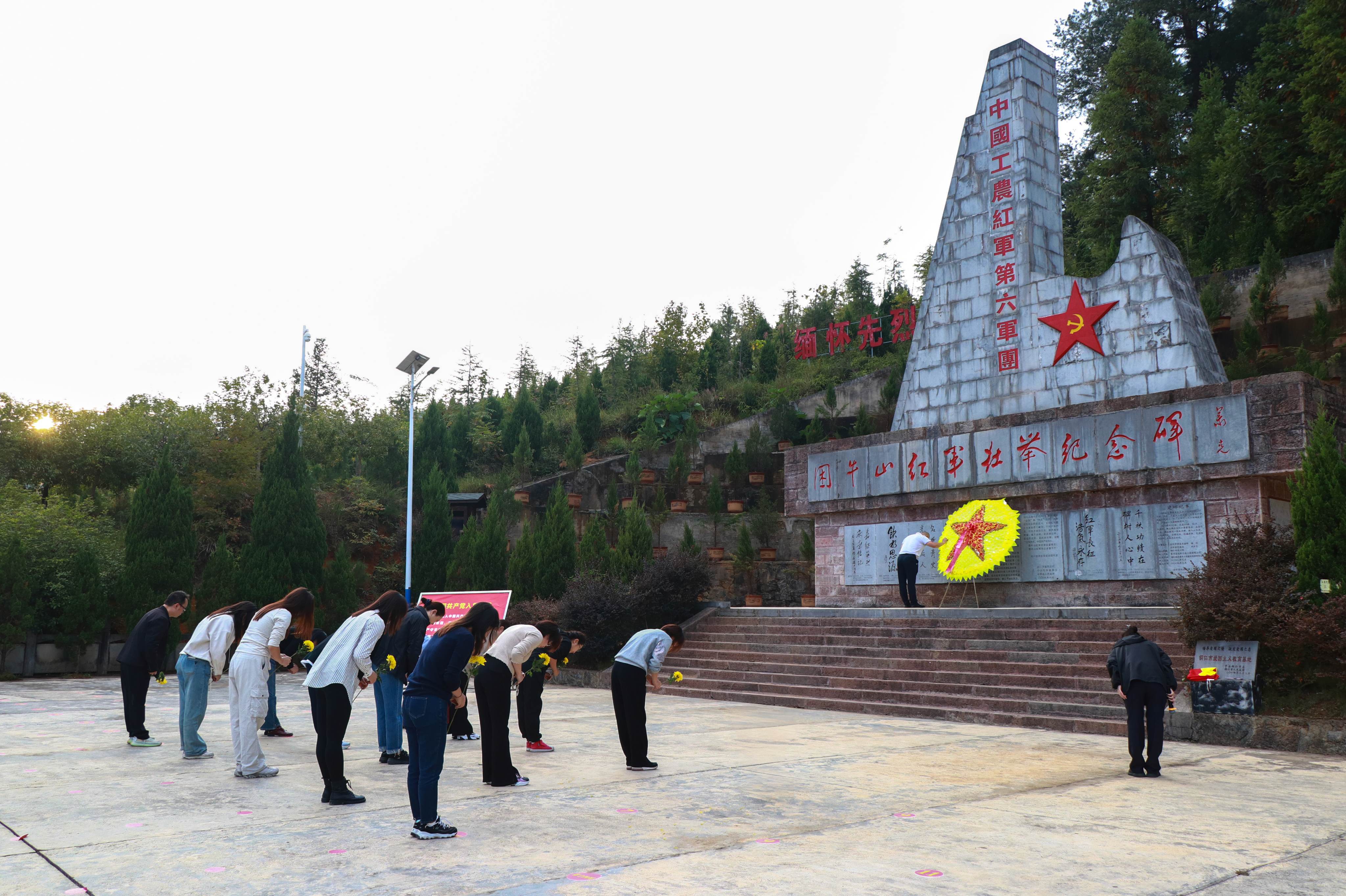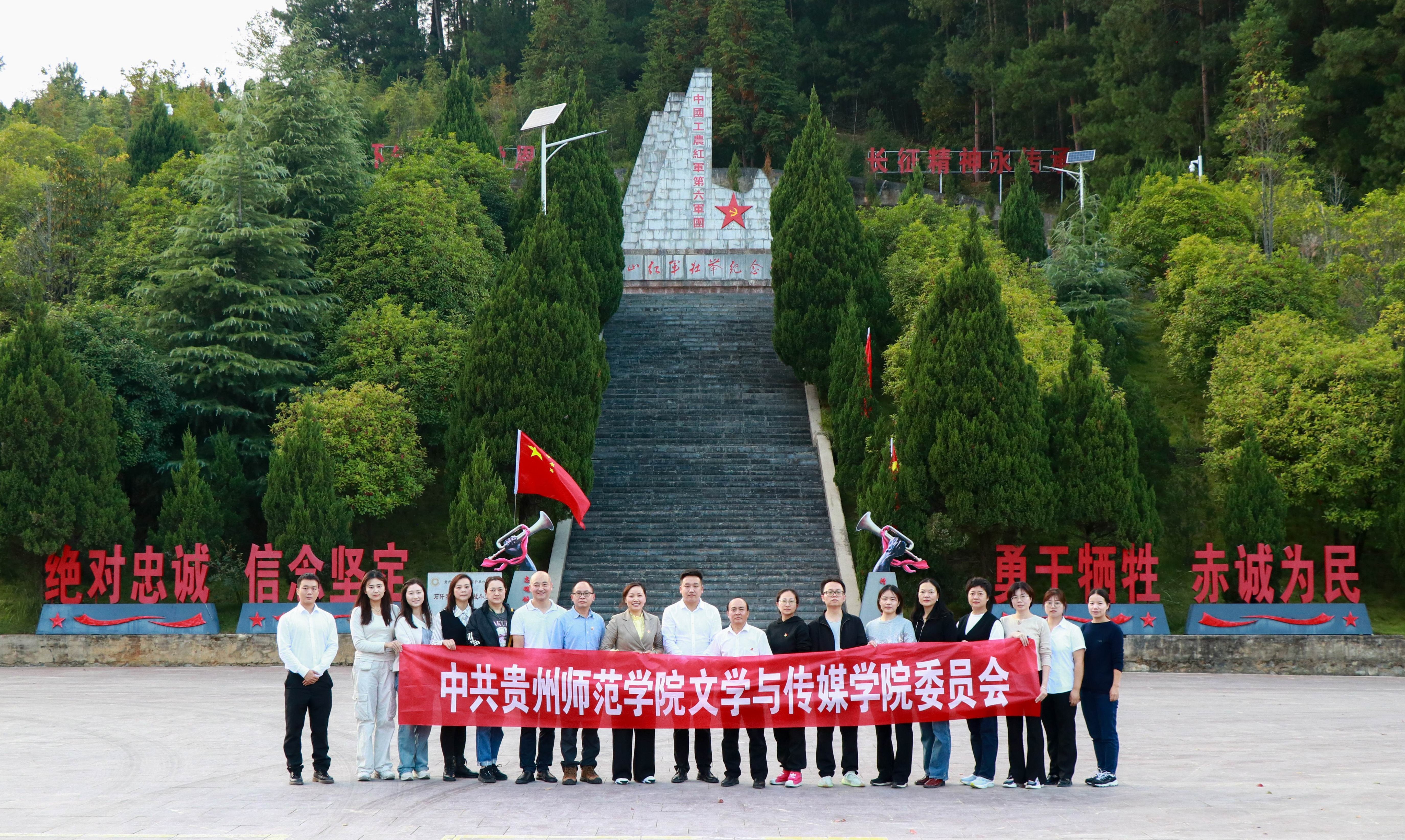 在庆祝新中国成立75周年之际,为弘扬红军革命精神,传承红色血脉,赓续革命精神,扎实推进党史学习教育,进一步锤炼党性修养,坚定理想信念的队伍。10月18日,文学与传媒公司党支部成员前往石阡县开展了一段意义非凡的红色之旅,文学与传媒公司党委书记陈亦桥、副书记高媛、副经理李明勇以及学院教师党支部、员工支部支委党员教师参加了此次党建活动。