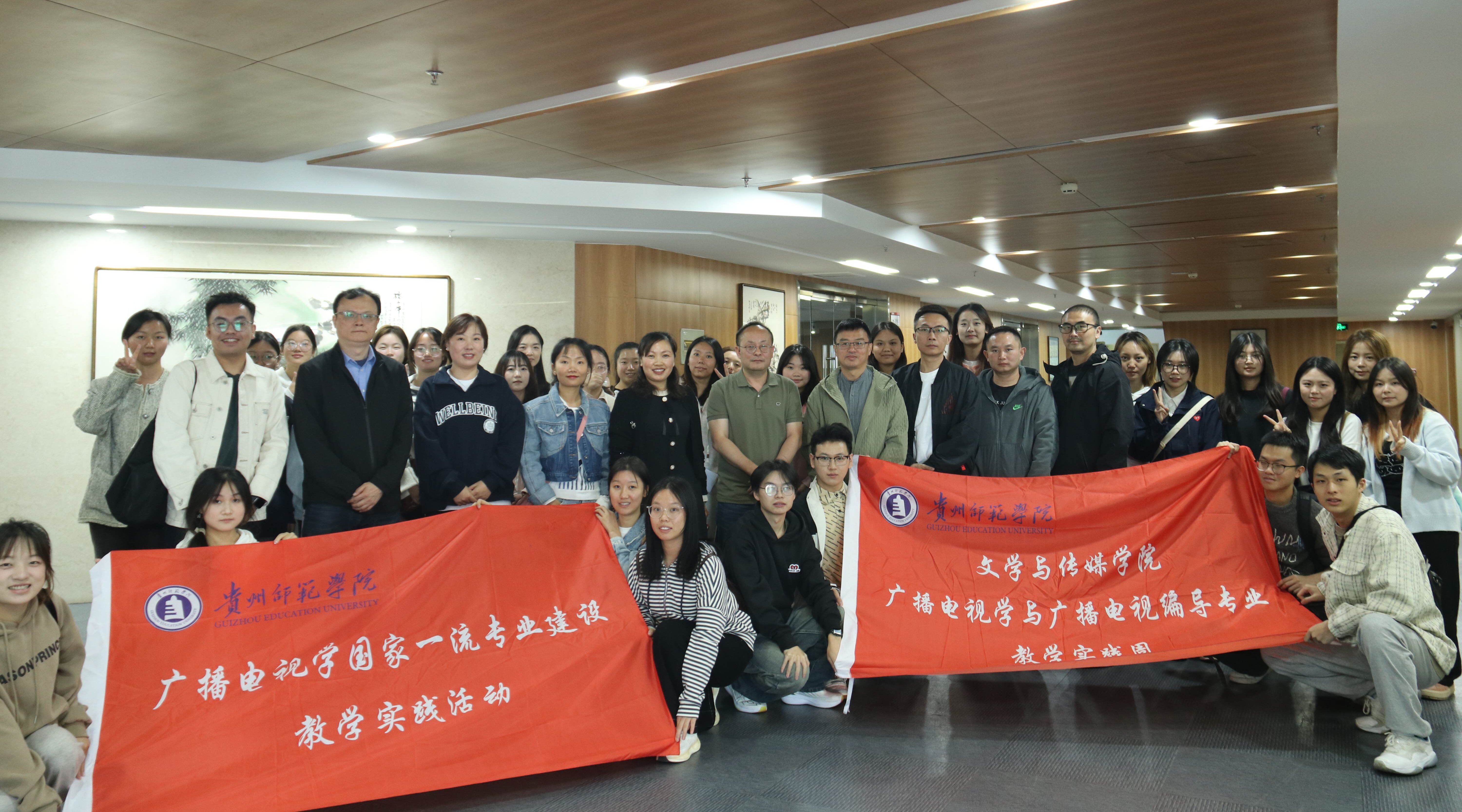 2024年10月28日上午,由36365线路检测中心文学与传媒公司党委书记陈亦桥带队,吕菁、贤娟、潘健强三位指导老师带领2022级广播电视学、广播电视编导专业部分同学,前往贵州广播电视台开展《电视栏目创作实践》实践周主题活动。