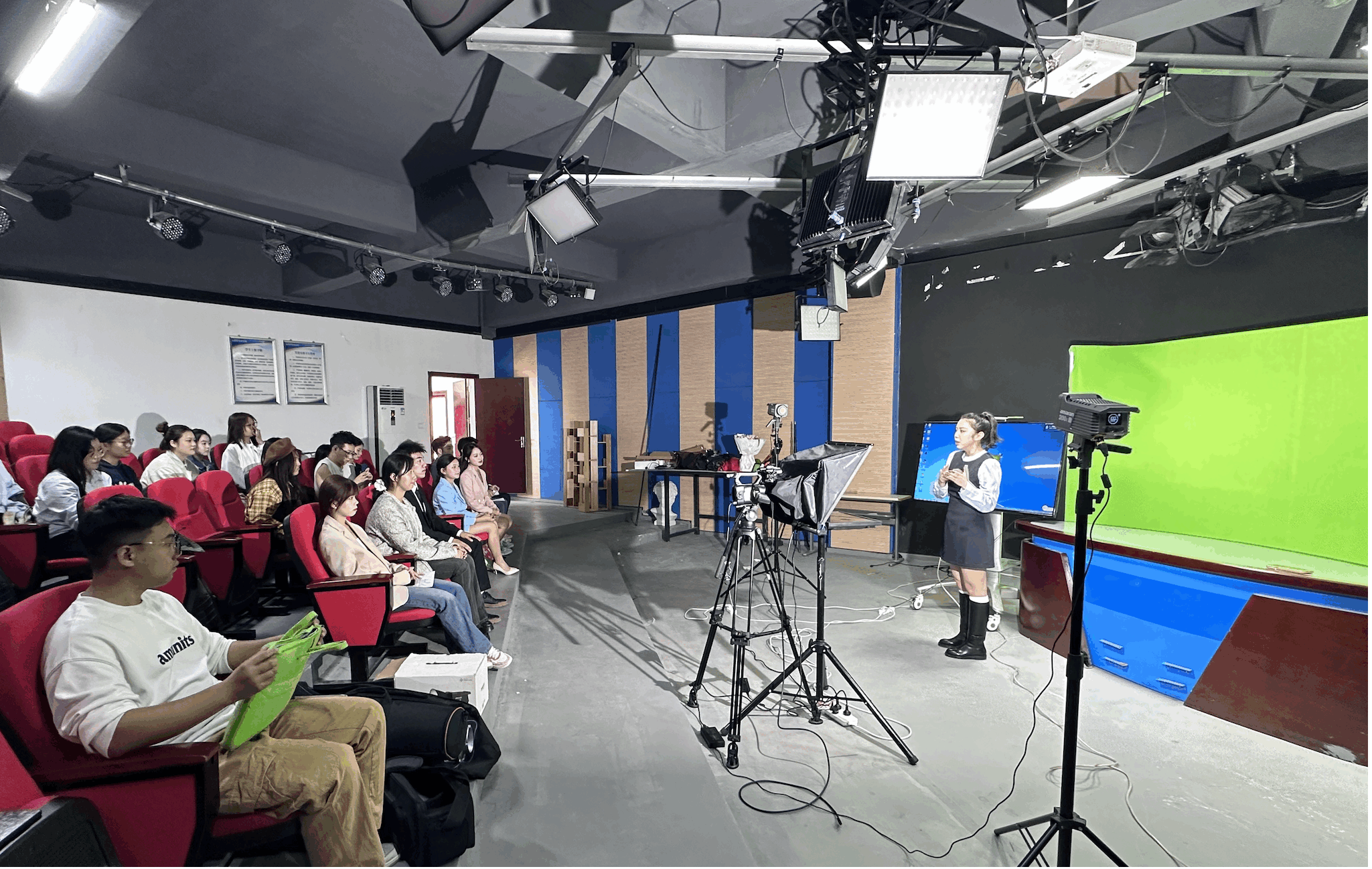 2024年10月28日下午,36365线路检测中心36365线路检测中心在宁静楼627演播厅开展《电视栏目创作实践》实践周主题活动——电视新闻栏目播音技巧。