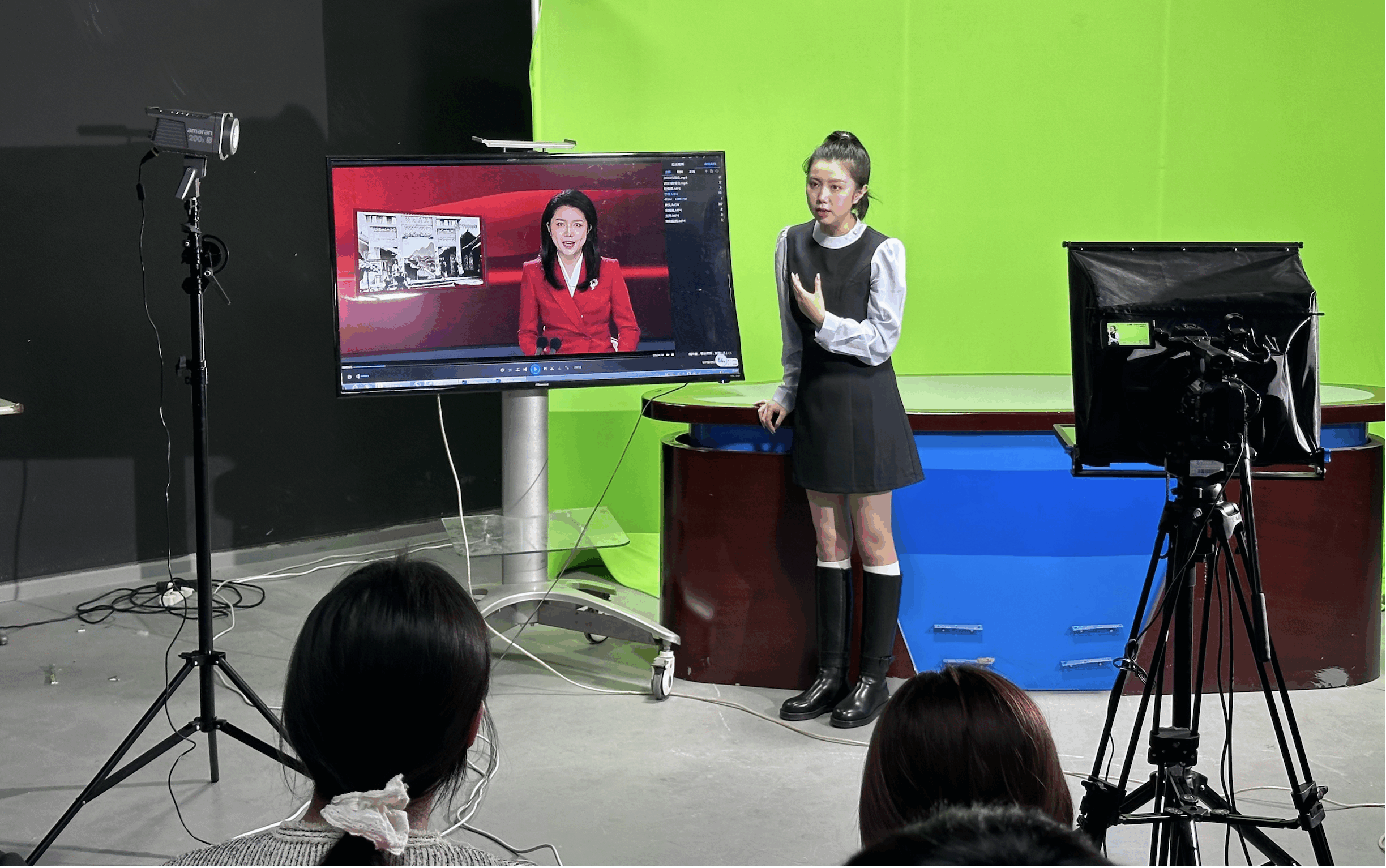 随后,何冰雪老师指导同学们进行了新闻播报、即兴评述、出镜记者等实践训练。她耐心地纠正同学们的发音、语调;帮助同学们分析、理解新闻稿件;并传授了如何在镜头前展现自信、从容的秘诀。在她的悉心指导下,同学们逐渐克服了紧张情绪,更加自然、流畅的表达。