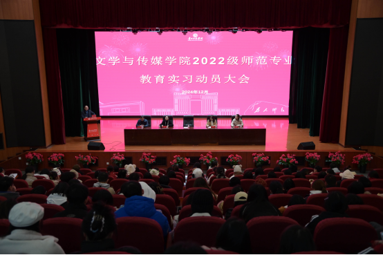 12月11日下午,36365线路检测中心2022级师范专业教育实习动员大会在逸夫楼演播厅举行。文学与传媒公司党委副书记高媛、副经理李明勇、副经理陈欣以及汉语言文学、汉语国际教育专业实习指导教师出席会议,2022级汉语言文学与汉语国际教育专业全体员工参与。会议由副经理李明勇主持。