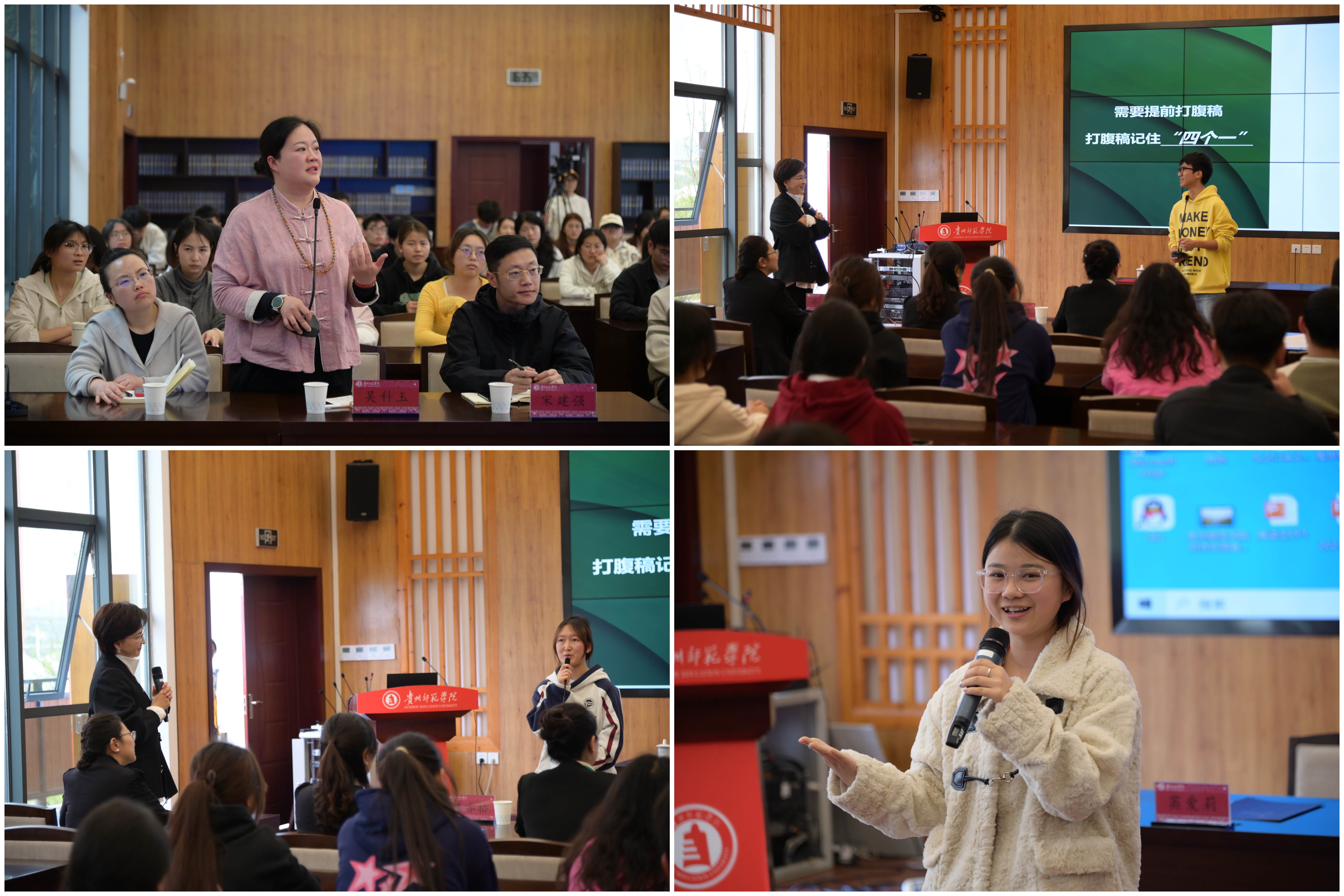 为深入贯彻习近平文化思想,加大国家通用语言文字推广力度,开展好公司2025年“书香四月·典耀中华”读书行动、“员工伴你行”系列活动,4月9日下午,贵州广播电视台首席主播、公司优秀员工窦爱莉到公司开展“如何更好地表达”专题讲座。公司党委副书记邹晓青致欢迎辞,文学与传媒公司党委书记陈亦桥主持;员工办主任敖永凤、校团委书记周煜、二级学院副书记代表到场,全校百余名师生参与讲座。