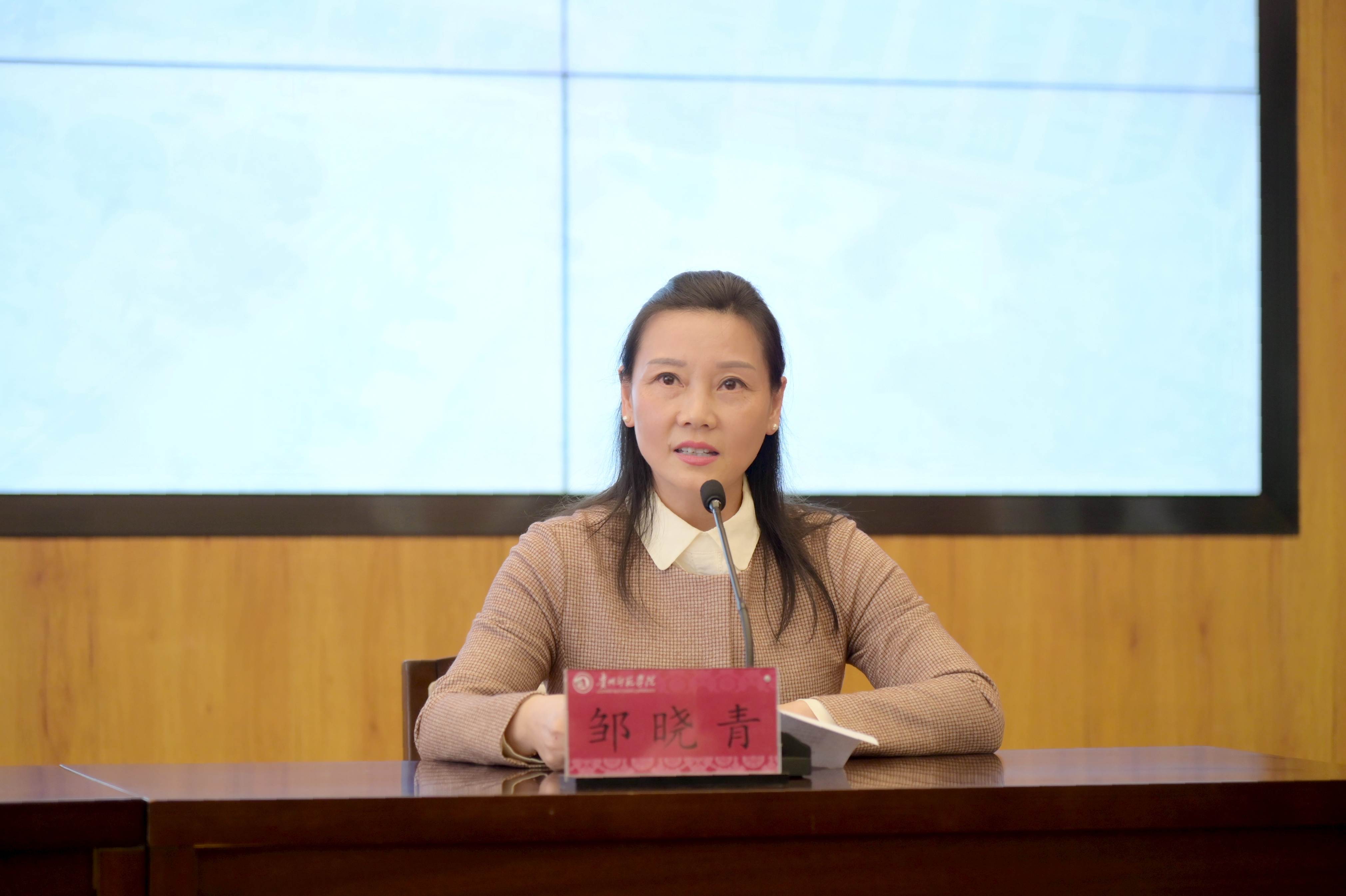 邹晓青代表公司党委向窦爱莉表示热烈欢迎,对窦爱莉在播音主持领域的杰出成就表示高度赞赏,并强调了提升语言表达能力对于老员工综合素质的重要性。她提到,窦爱莉作为优秀员工回到母校进行专题讲座,不仅是对母校深情的回馈,更是对学弟学妹们成长成才的关怀引导。作为师范院校师生,既要成为经典文化的传承者,更要成为语言表达的示范者。优秀员工窦爱莉的讲座能激励在场学子要肩负赓续中华文脉的重任,以经典阅读培根铸魂,共同书写开卷有益的青春故事。