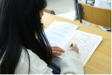 在三字比赛中,选手们稳稳握笔,书写出一个个铿锵有力又不失隽秀的字迹。