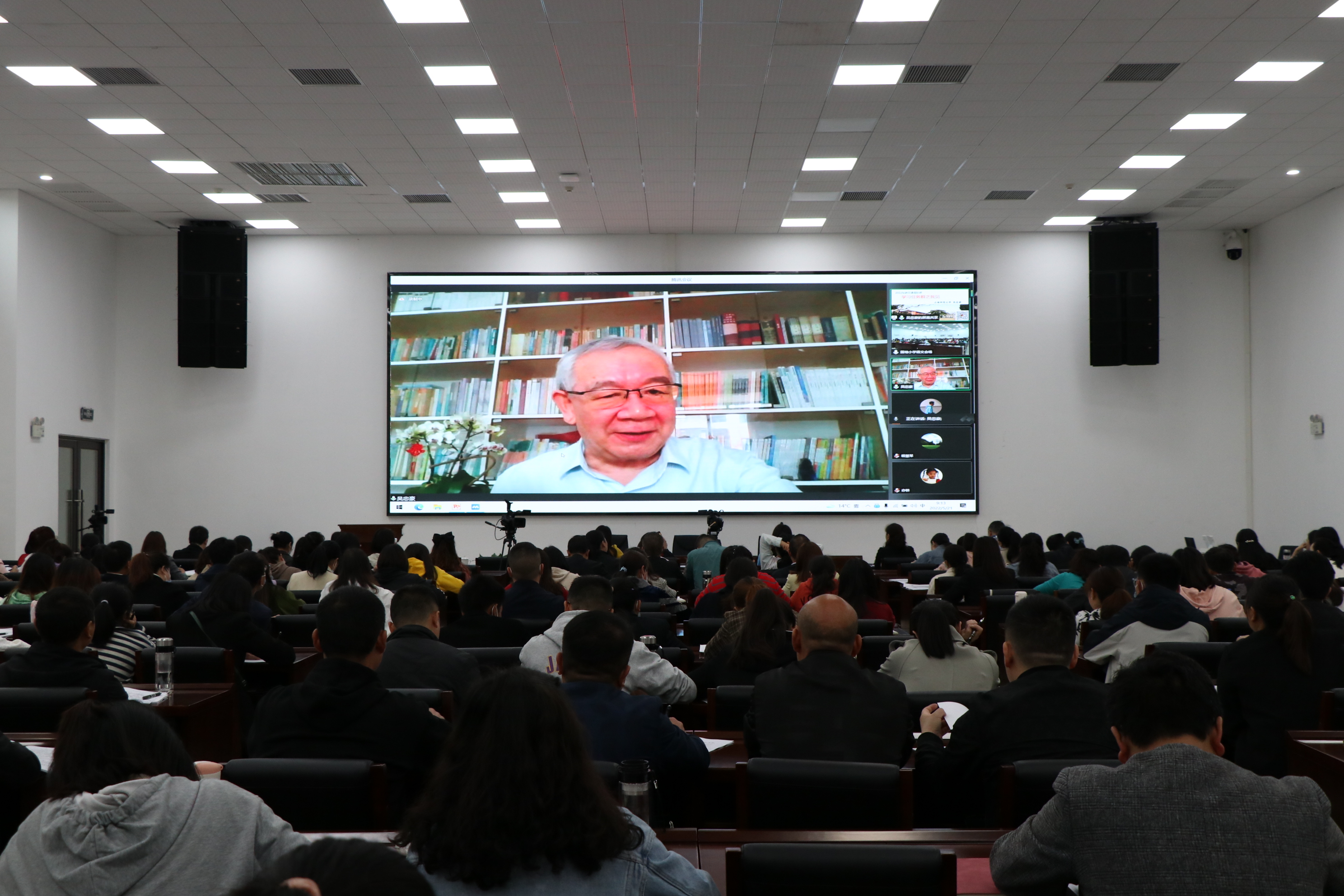 本网讯 2022年5月21日,公司邀请了著名国培专家、上海师范大学吴忠豪教授为“国培计划(2021)”-中小学学科骨干教师提升培训项目(小学语文)学员线上授课。讲座在公司综合楼裙楼3-1报告厅举行,由公司党委书记王军主持。