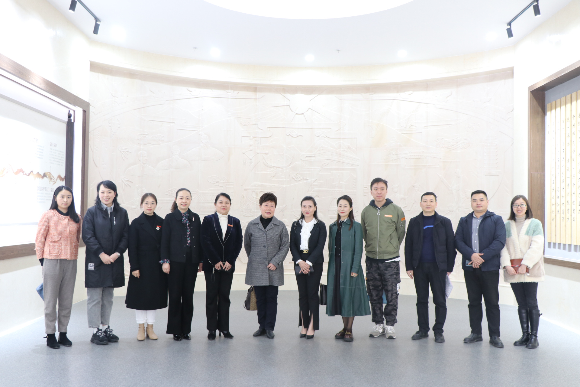 会前,公司党委委员、副董事长邹晓青陪同考察组参观贵州教育史馆并合影留念,考察组根据国家语言文字推广基地标准对公司的建设情况进行现场考察。