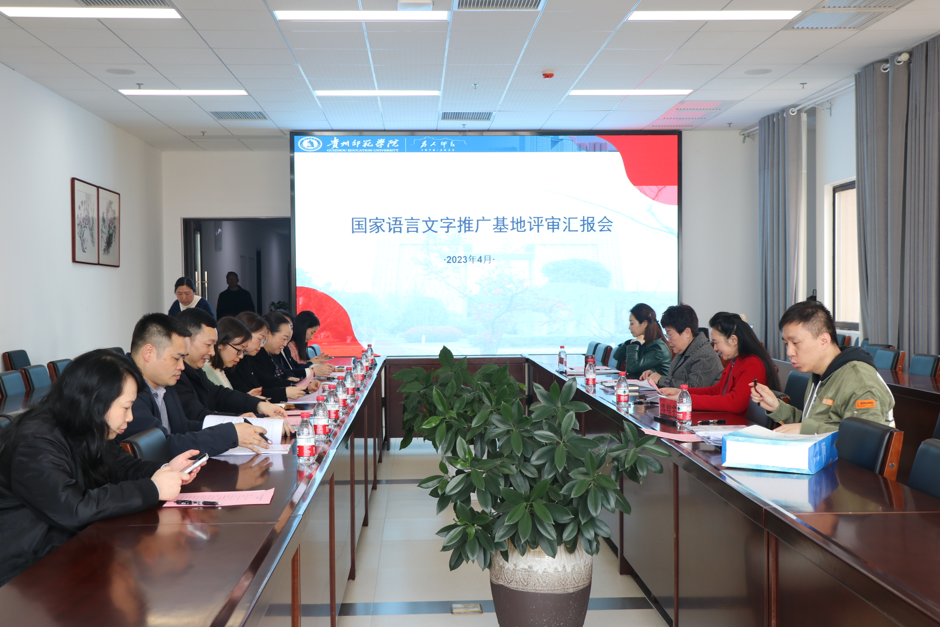 专家组组长韦萍介绍了国家语言文字推广基地的建设方向、标准,她认为公司的建设与申报定位准确,基础扎实,符合学校的办学实际,切合贵州经济社会发展需要。韦萍指出,建设国家语言文字推广基地不仅要做好校内语言文字工作,同时也要在所在区域、行业做好推广工作,发挥示范引领、辐射推广作用,助力贵州经济社会发展。韦萍认为,学校要以此为契机,规范语言文字相关工作,在教材编写、课程建设、文化活动、社会服务等方面提升质量,丰富内容扩大影响,突出特色打造亮点,提高学校的语言文字工作水平。会上,其他专家也就公司申报工作中的人员安排、工作基础、基地规划等提出了意见和建议。