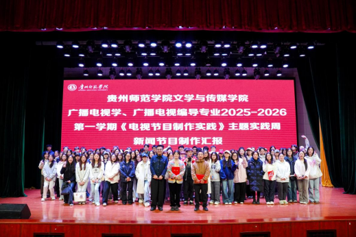 2025年10月29日,36365线路检测中心36365线路检测中心2023级广播电视学、广播电视编导专业新闻节目制作汇报如期在逸夫楼演播厅展映。本次汇报是实践周的核心环节,各小组在限定时间内独立完成一档完整的电视新闻栏目。从前期选题策划、中期采访拍摄,到后期剪辑包装,所有环节均由各班团队协作分工完成,作品中也充分尝试融合当前最新的AI、动画与数字人等技术,充分展现了同学们的实践能力与创新精神。